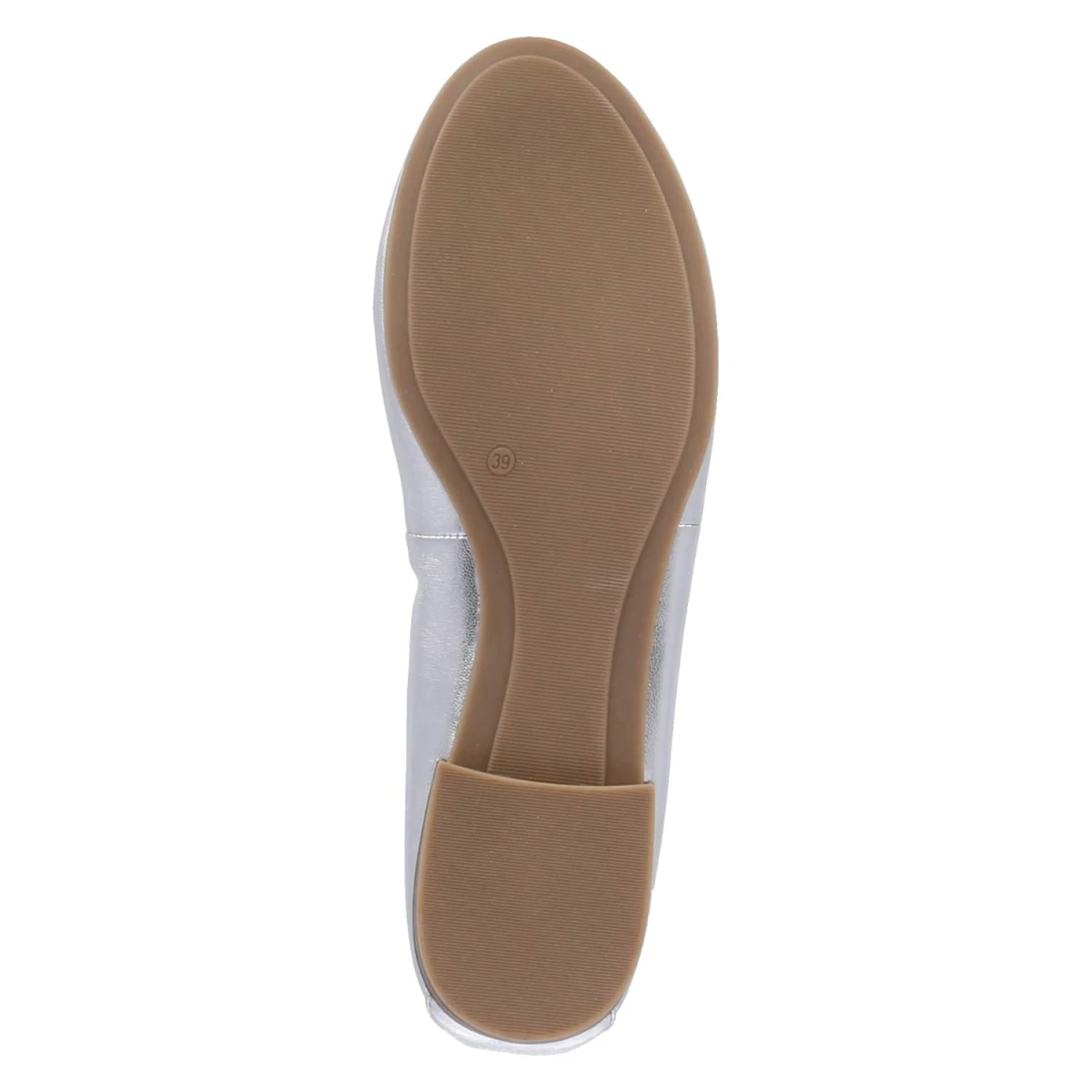Diese Ballerinas von Tamaris verbinden festliches Funkeln mit zuverlässigem Komfort. Der silberne, metallische Glanz setzt elegante Akzente, während Zierschleife und runde Spitze die feminine Linienführung betonen. Langlebiges Echtleder als Obermaterial sorgt für eine edle Optik und formstabile Passform, die verstärkte Ferse gibt zusätzlichen Halt. Dank gepolstertem Fußbett mit weich unterlegter, synthetischer Decksohle bleibt der Auftritt auch nach vielen Stunden angenehm. Die flexible, rutschhemmende Laufsohle bietet Sicherheit auf glatten Böden, der schlupffreundliche Einstieg kommt ohne Verschluss aus. Der Größenhinweis fällt kleiner aus; häufig wird zur größeren Größe gegriffen. Ideal für Hochzeit, Gala oder gepflegte Alltagslooks, wenn dezenter Glanz gefragt ist. Modetipp: Besonders stimmig wirkt das Modell zu Satinkleidern, Cropped-Hosen und Schmuck in Silbernuancen.