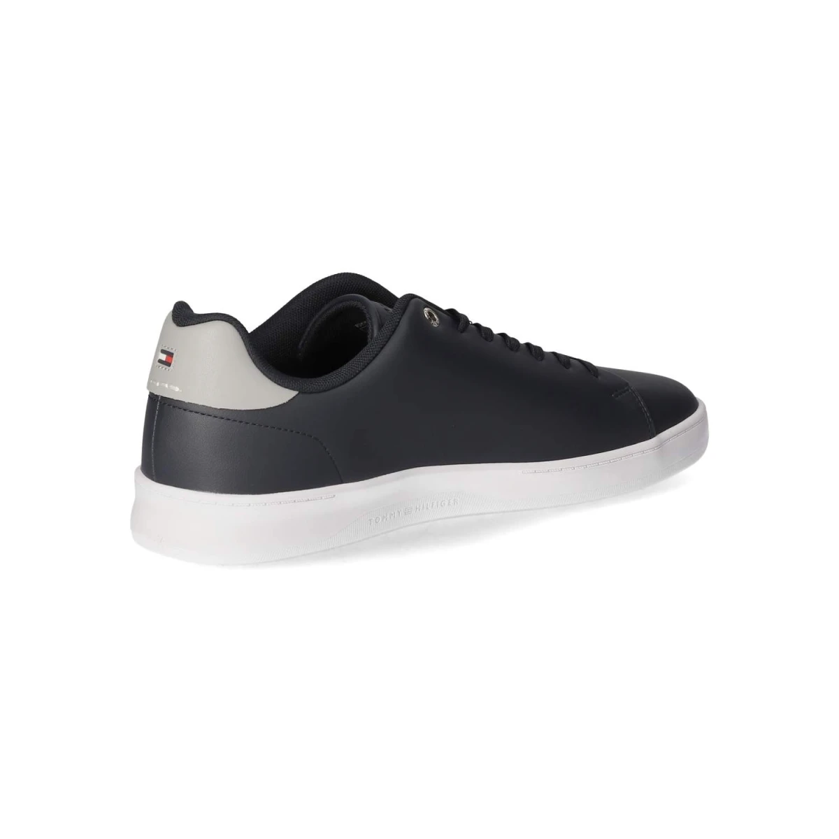 Der Low Sneaker von Tommy Hilfiger präsentiert sich in sattem Blau mit Obermaterial aus langlebigem Echtleder in glatter Ausführung. Der rund gearbeitete Leisten bietet angenehme Zehenfreiheit, während der bequem gepolsterte Einstieg und die gepolsterte, herausnehmbare Decksohle aus Textil spürbare Entlastung im Alltag bringen. Eine klassische Schnürung ermöglicht die individuelle Anpassung der Passform, die insgesamt größengetreu ausfällt. Verstärkte Zehen- und Fersenbereiche erhöhen die Formstabilität, die flexible, rutschhemmende Profilsohle sorgt für verlässlichen Grip auf urbanen Wegen. Der seitliche Markenprint setzt ein dezentes Statement und unterstreicht den cleanen Look. Modetipp: Mit indigoblauer Jeans, weißem Oxfordhemd und leichter Harrington-Jacke entsteht ein zeitloses City-Outfit, das den sportiven Charakter mit gepflegter Lässigkeit verbindet.