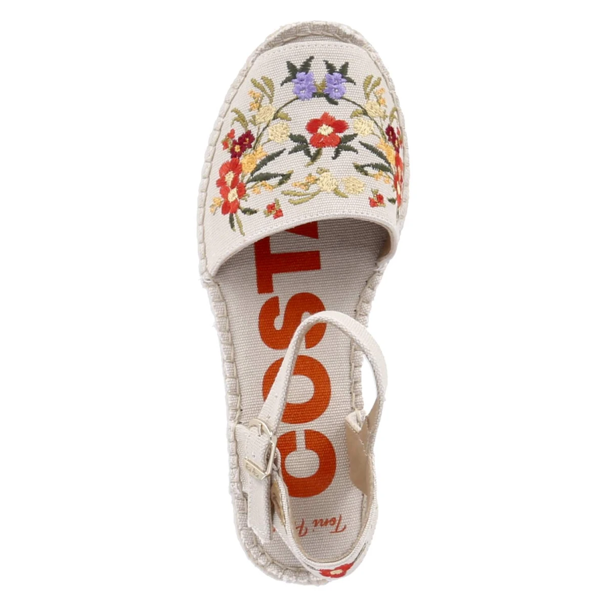 Die Sandalen GARBET von Toni Pons verbinden mediterranes Design mit alltagstauglichem Komfort. Das robuste Textilobermaterial zeigt eine farbenfrohe Blumenstickerei, die dem beigen Grundton einen frischen Akzent verleiht. Offen gestaltet und mit geflochtenem Sohlenrahmen erinnert das Modell an klassische Espadrille-Details, während die weiche Decksohle aus Textil für ein angenehmes Fußklima sorgt. Die Schnalle mit Elastikeinsatz ermöglicht ein anpassungsfähiges Tragegefühl, das sich bei jedem Schritt flexibel zeigt. Eine rutschhemmende Laufsohle schenkt sicheren Halt auf Stadtwegen und Promenaden. Der Fit fällt normal aus und macht die Wahl der gewohnten Größe unkompliziert. Ein vielseitiger Begleiter für entspannte Sommerlooks und kleine Anlässe, die dennoch nach Stil verlangen. Modetipp: Zu Midikleid in Naturtönen und einer Basttasche kombinieren, dazu filigraner Goldschmuck für einen fein abgerundeten Auftritt.
